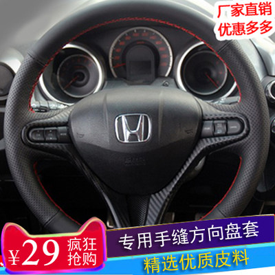 本田二代飞度老锋范xrv杰德思铭思域专用真皮手缝方向盘套把套